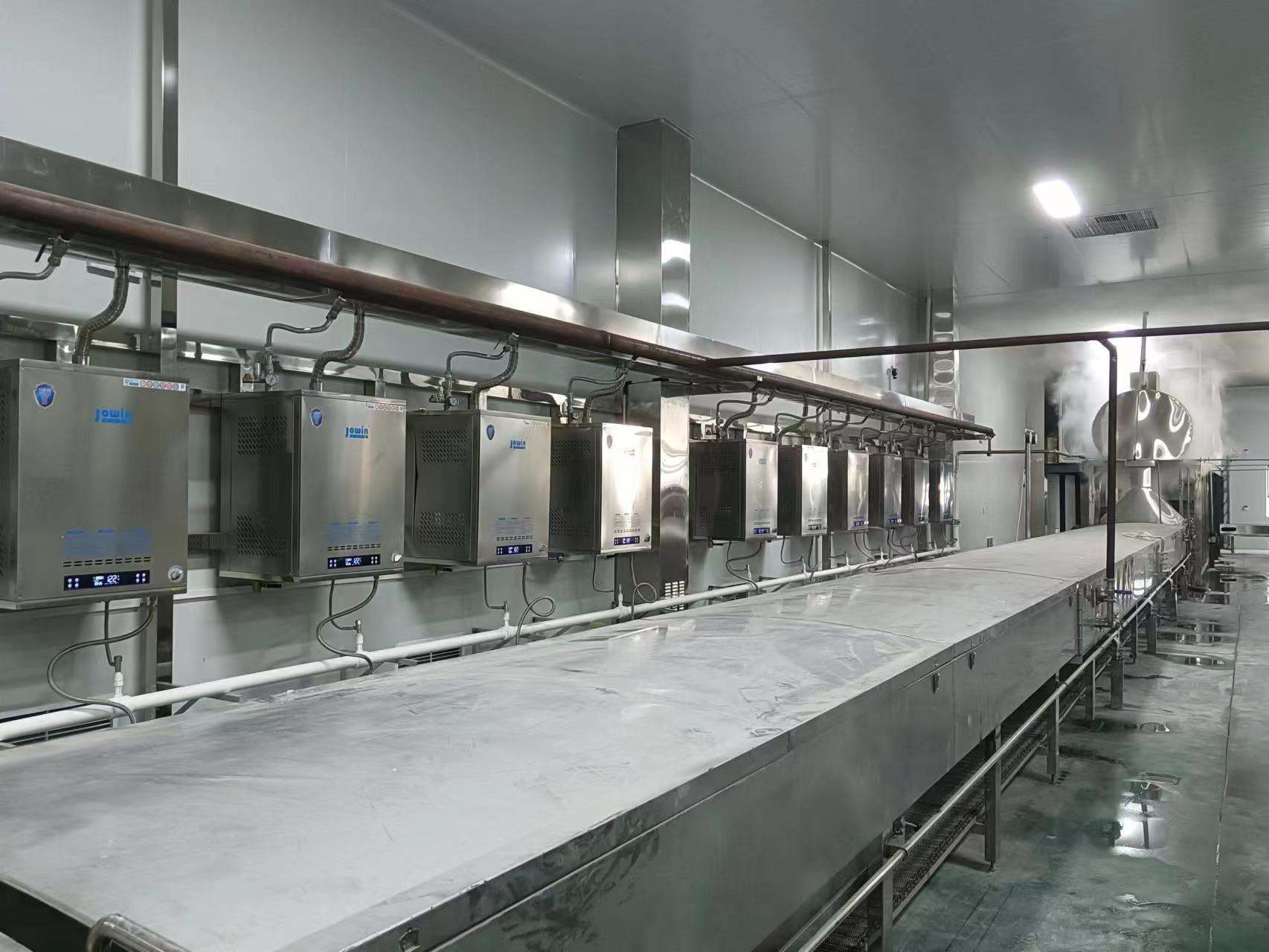 現采用5臺120G卓益蒸汽發生器給面條生產線供蒸汽,10臺120G蒸汽發生器給涼皮機供蒸汽,4臺150G蒸汽發生器配套蒸箱。