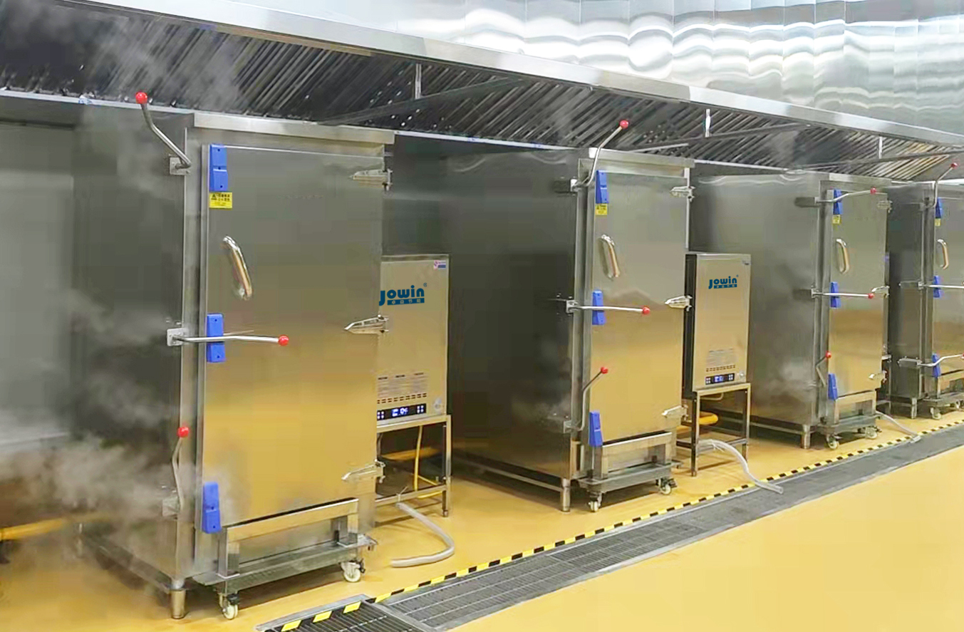 漢中中央廚房項目,配的洗筐機,蒸箱和瓢湯線