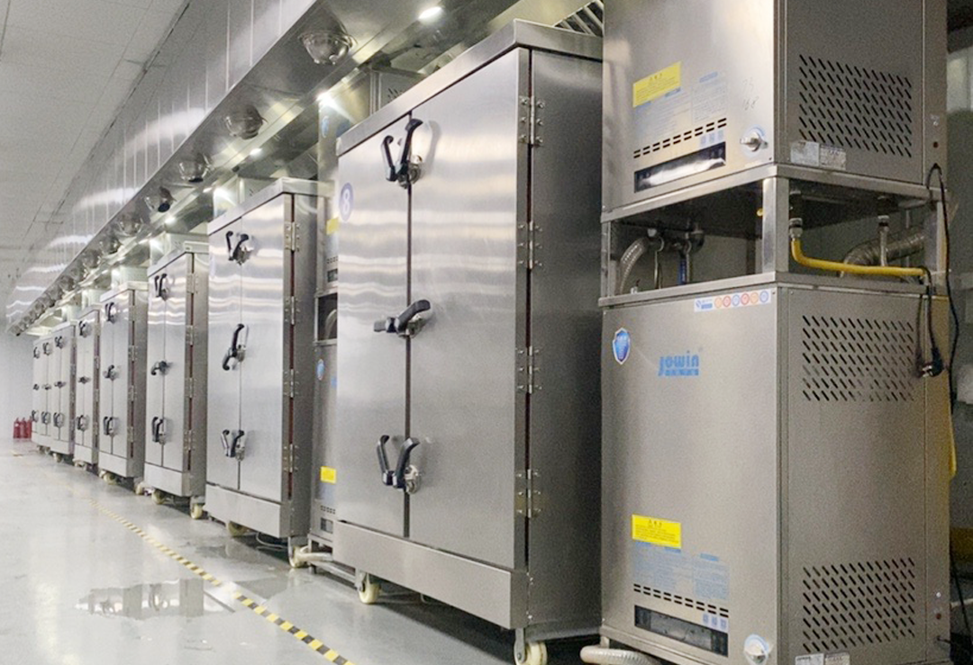 漢中中央廚房項目,配的洗筐機,蒸箱和瓢湯線