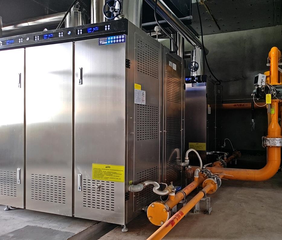 廣州逅廚食品加工客戶,由我們?cè)O(shè)計(jì)施工的1.6噸蒸汽項(xiàng)目,今天過(guò)來(lái)調(diào)式,我們現(xiàn)直奔設(shè)備間,采用多臺(tái)卓益蒸汽發(fā)生器,模塊化設(shè)計(jì),潔凈高溫蒸汽,鋁皮保溫,安裝工藝很奈斯,4公斤蒸汽壓力,主要為洗碗機(jī)、洗框機(jī)、夾層鍋,蒸箱,洗鍋機(jī)、蒸汽回轉(zhuǎn)鍋、真空速冷機(jī)等供蒸汽!