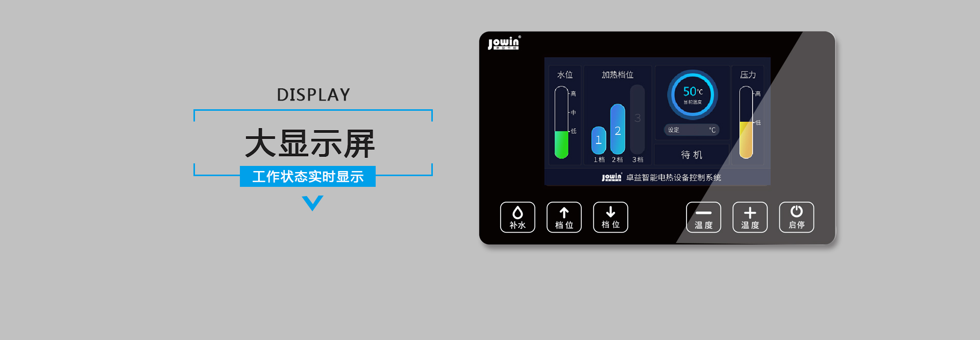 蒸汽量:25~100kg/h 尺寸:600*600*1050mm 蒸汽壓力:0.7MPa壓力保護,大顯示屏,三檔電熱可調,自動進水,體積小,安裝方便,無噪音,節能環保,可單臺或多臺并聯安裝,蒸汽發量大